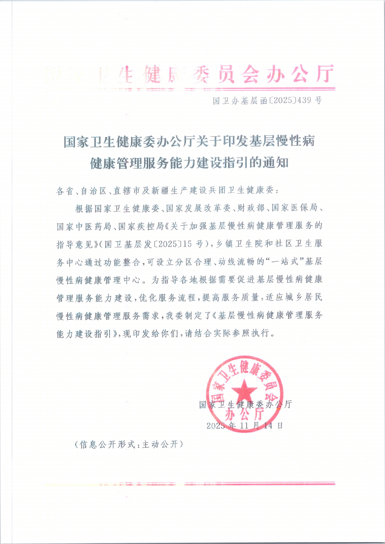 【 公文发布 】关于印发基层慢性病健康管理服务能力建设指引的通知